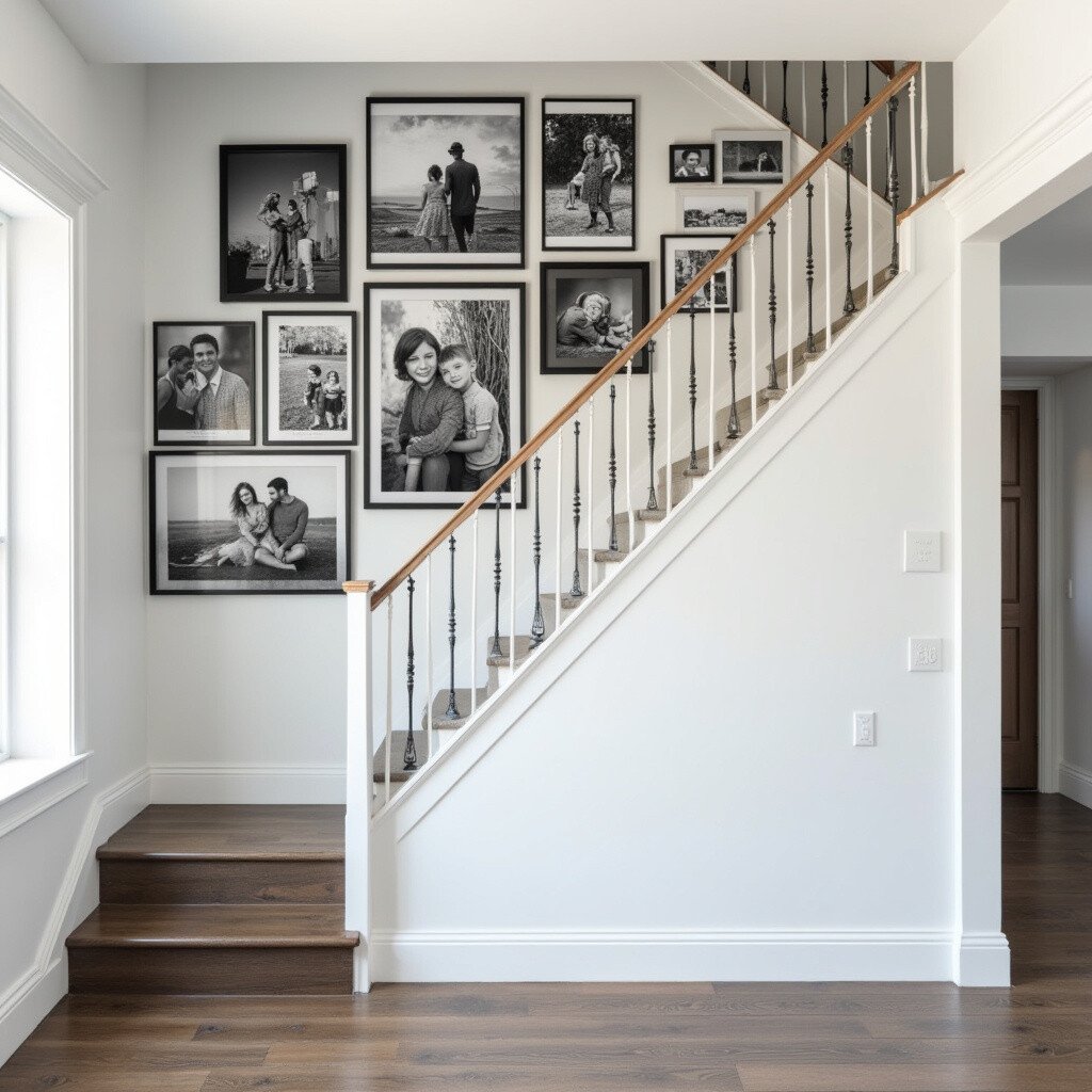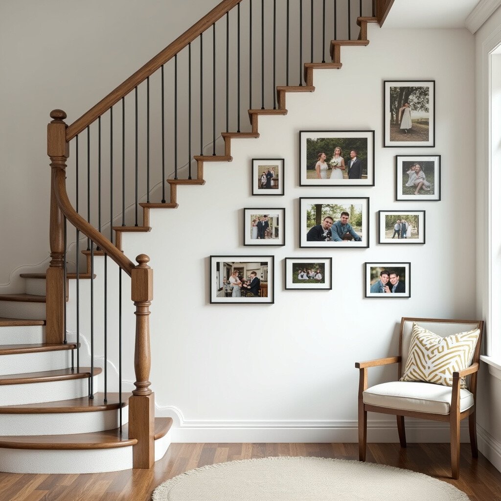 Take a stroll down memory lane by featuring photos from significant life events. Weddings, birthdays, and vacations can be relived every day. This personal touch makes your staircase wall a reflection of cherished moments.