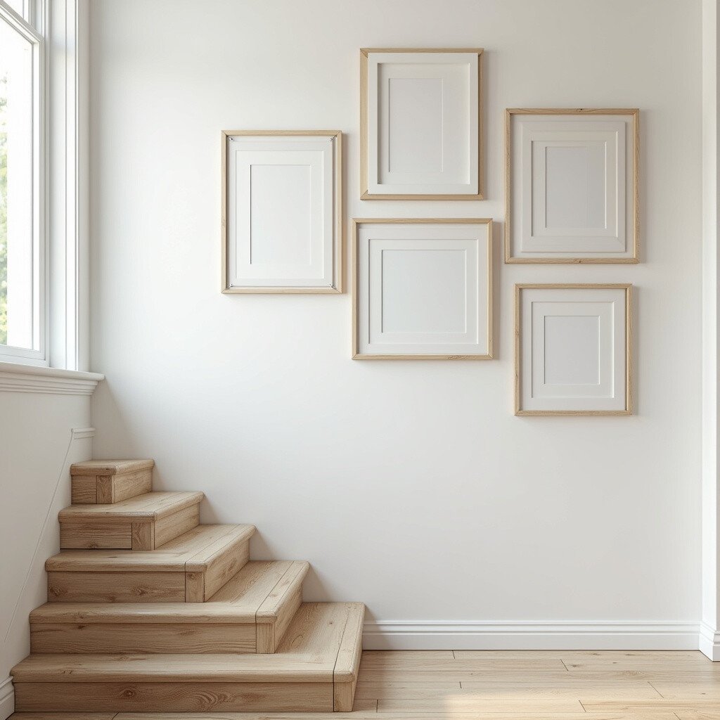 Add a personal touch with monogrammed frames or letters. This elegant detail makes your staircase wall uniquely yours. Combine with coordinating photos for a sophisticated and personalized display.
