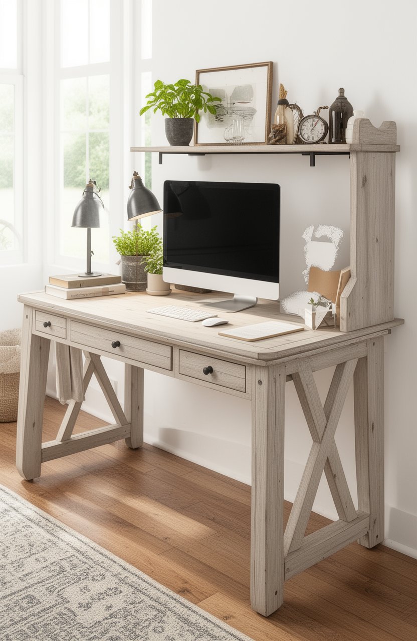 Use a farmhouse-style cart as your desk. It’s mobile and adds a rustic touch.