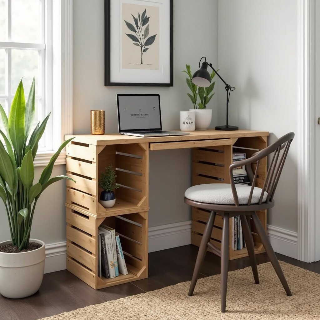 Personalize by painting or staining crates to match your decor. It’s affordable since crates are easy to find or even DIY. This desk style is both charming and useful.