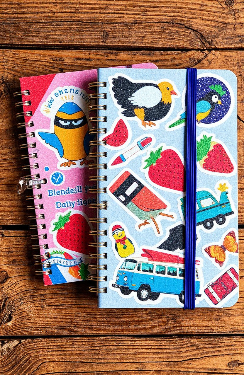 Jazz up your notebooks with colorful sticker designs. Turn a plain cover into a reflection of your interests and passions. It’s a fun way to make your stationery truly your own.