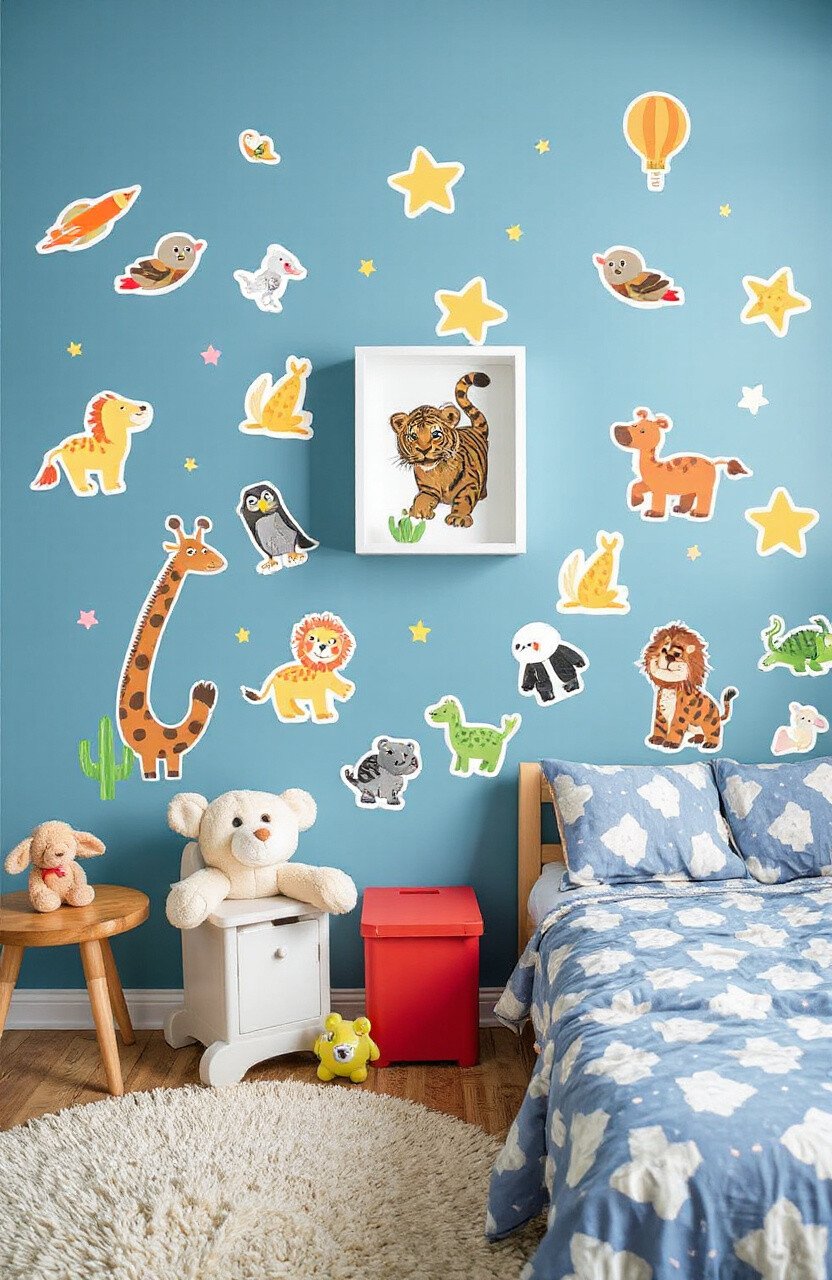 Choose removable stickers for flexibility as your child grows. This affordable decorating method allows for frequent updates, keeping the room exciting and engaging.