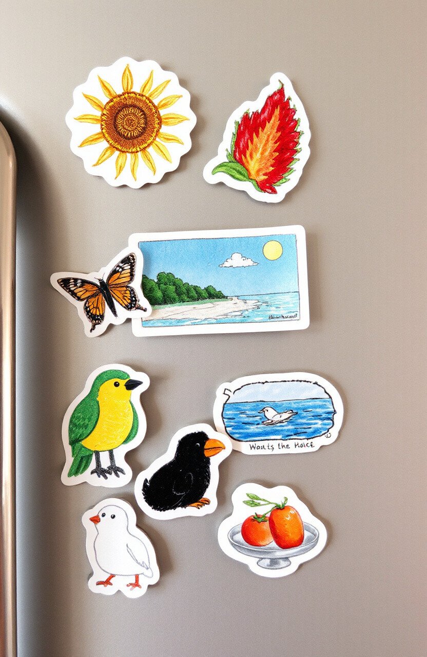 Convert your favorite sticker designs into fridge magnets. Capture memories, notes, or art that adds color to your kitchen. These little pieces of flair can brighten up everyday moments.