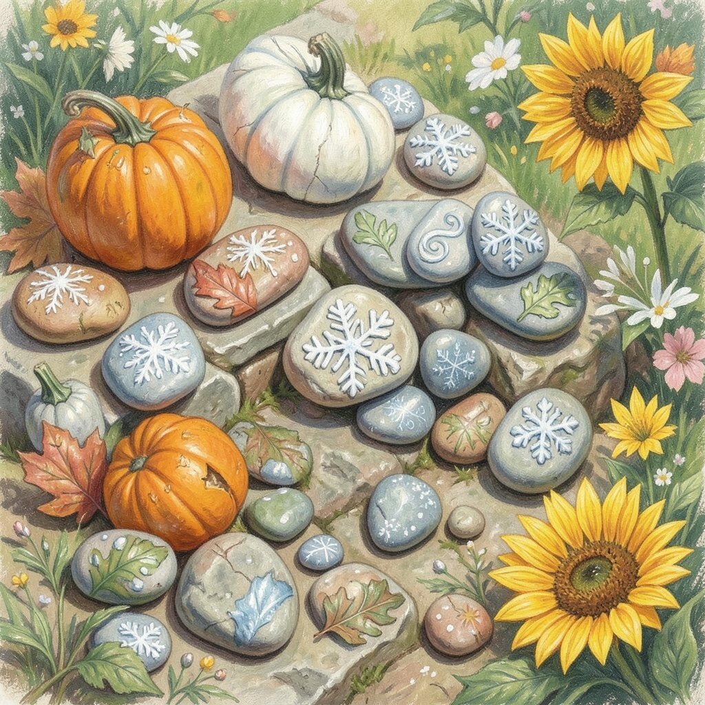 Celebrate each season with themed stones. Think pumpkins for fall, snowflakes for winter, or sunflowers for summer. These stones are a lovely way to mark the changing seasons.
