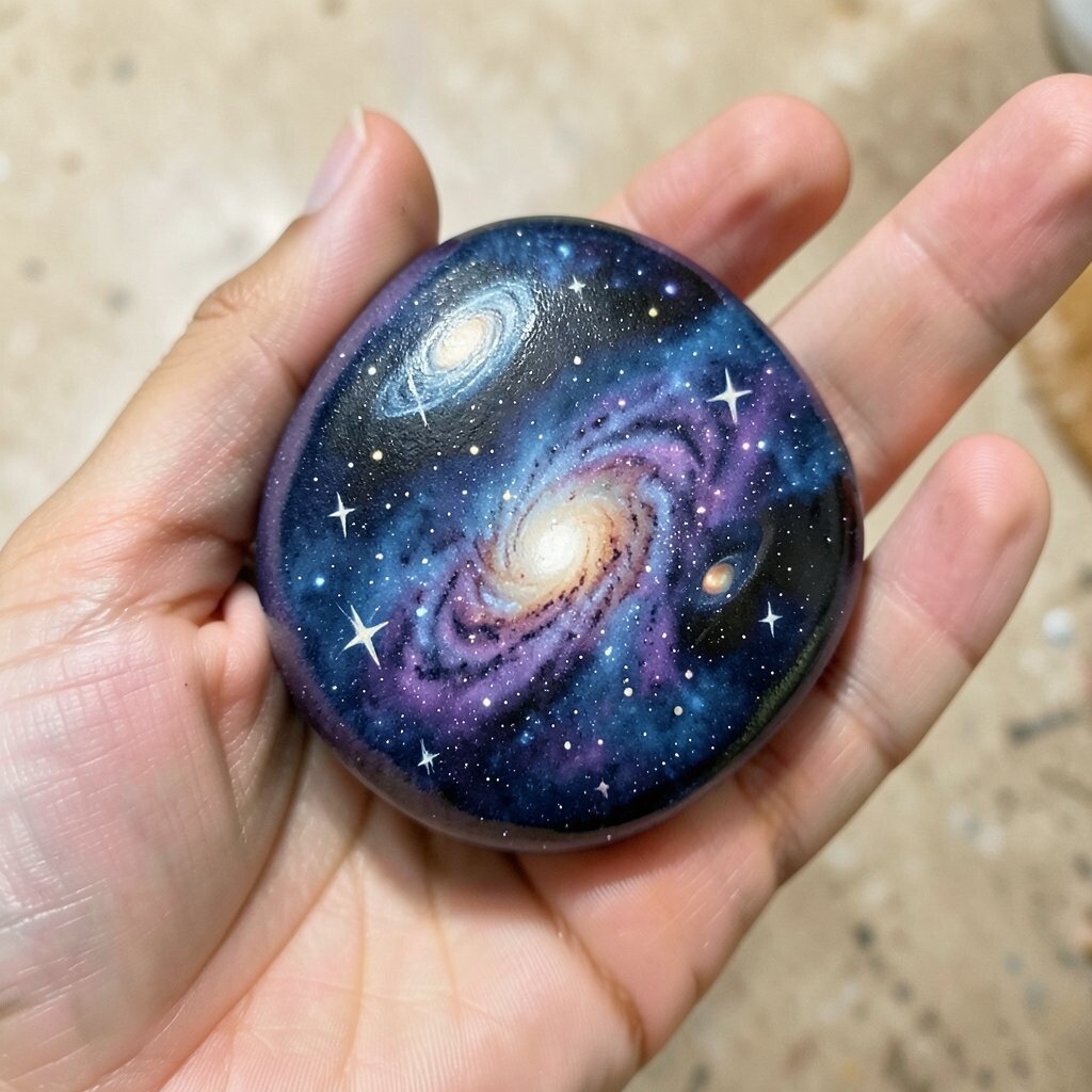 This is a fantastic way to experiment with blending colors. Each stone becomes a tiny universe that fits right in your pocket. For a shimmering effect, use metallic paints or glitter. It’s like holding a piece of space in your hand!