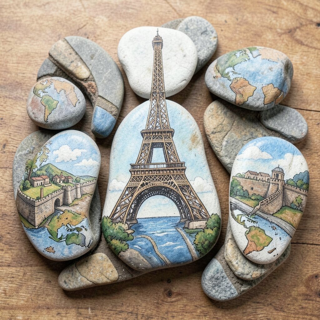 Travel the world from your home with stones painted like famous landmarks. Think Eiffel Tower or the Great Wall. These stones are great conversation starters.