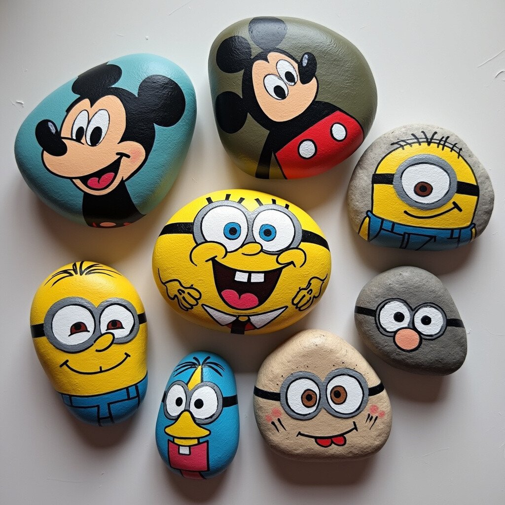 Bring your favorite cartoon characters to life on stones. Paint iconic figures like Mickey Mouse, SpongeBob, or the Minions. It’s a fun way to celebrate your love for cartoons.