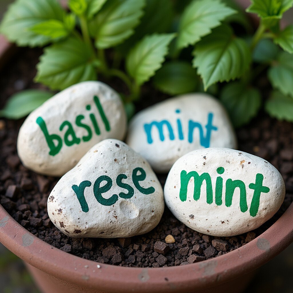 Paint stones to use as markers for your herb garden. Write the names of herbs like basil, mint, and rosemary, and place them near each plant. It’s a practical and charming way to organize your garden.