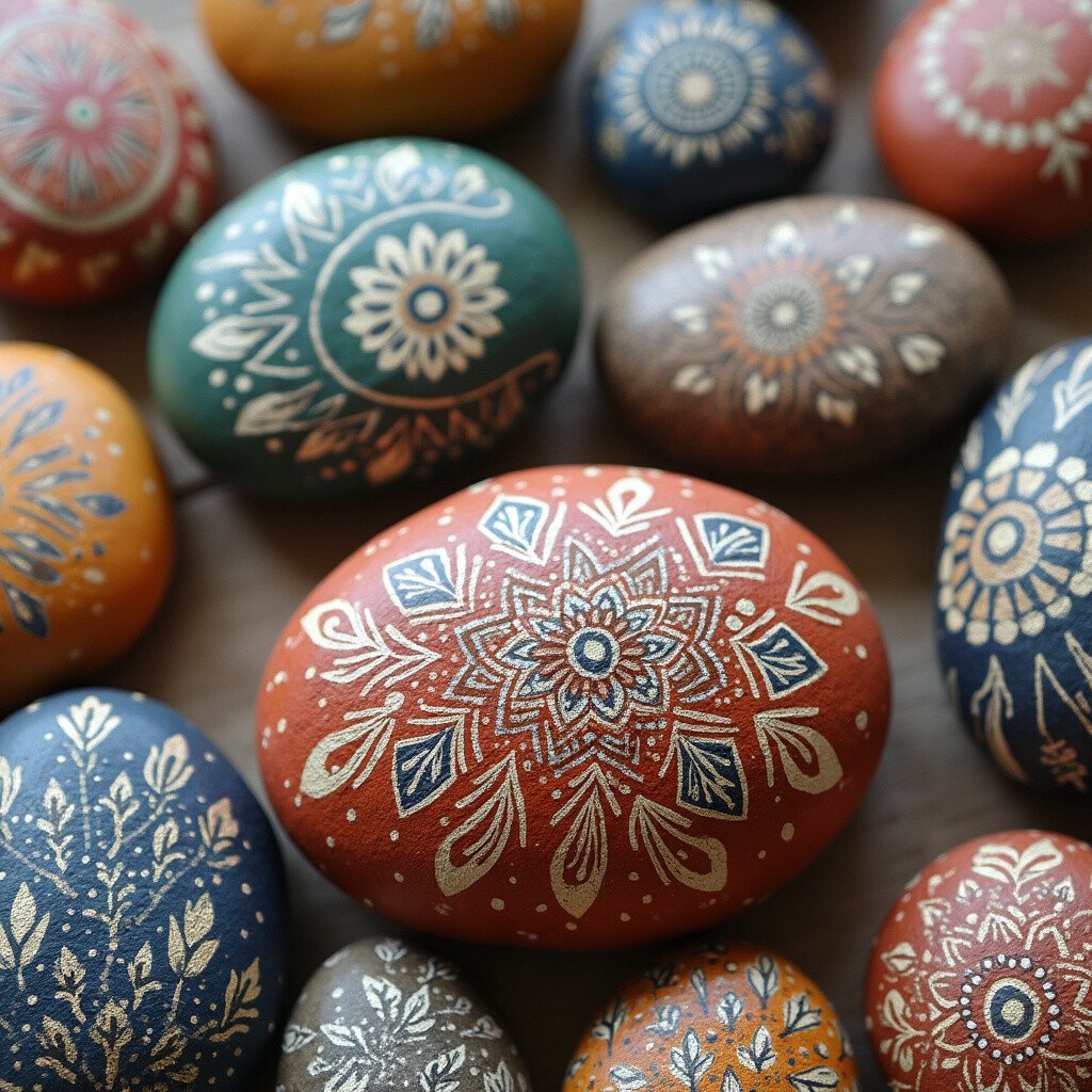Explore different cultures by painting stones with tribal art designs. Use earthy tones and traditional patterns to create stunning pieces. These stones are great for cultural enthusiasts.