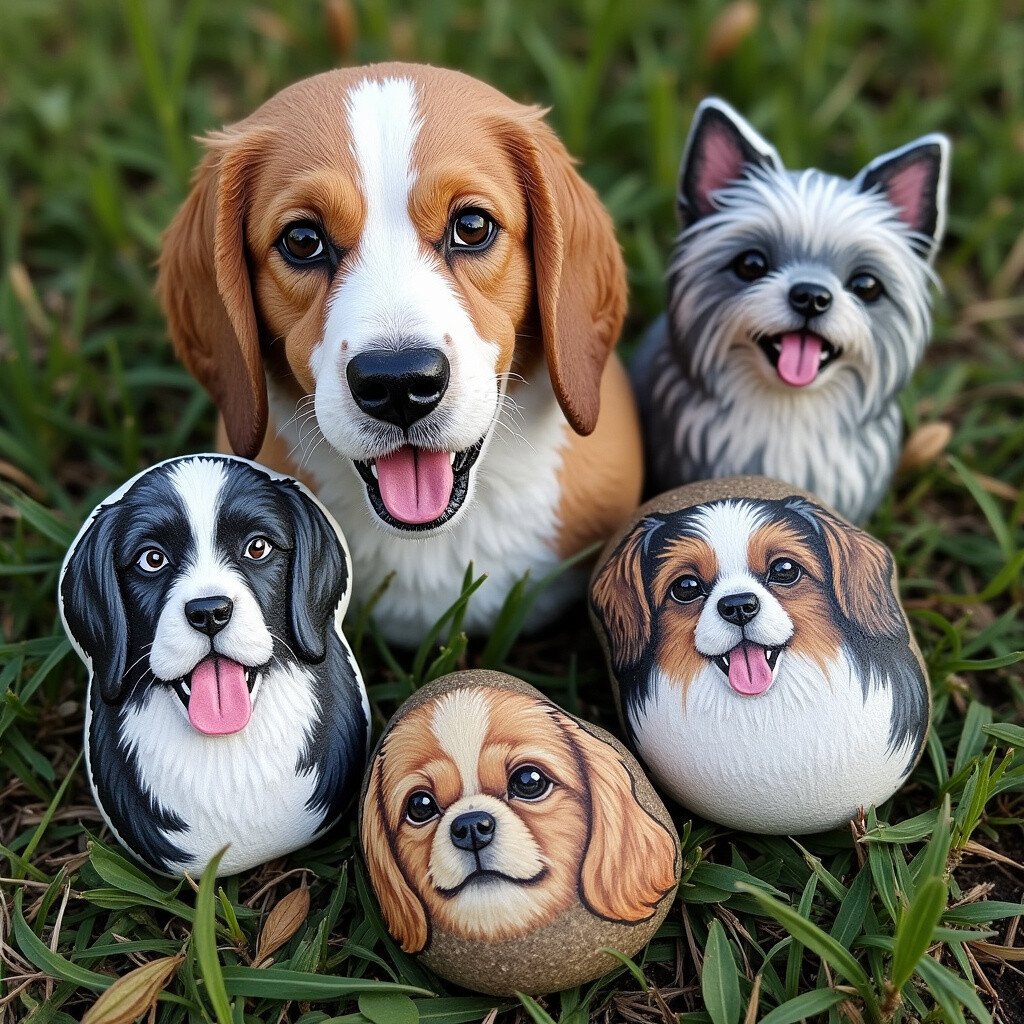 Honor your furry friends by painting stones with their likenesses. Capture their unique features and personalities in your designs. These stones are a heartfelt tribute to your pets.