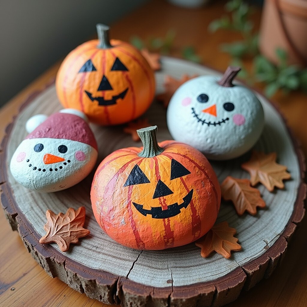 Holiday stones can be used as table centerpieces or as part of your home decor. They keep your space festive and fun. The cost is low, and you can use them year after year.