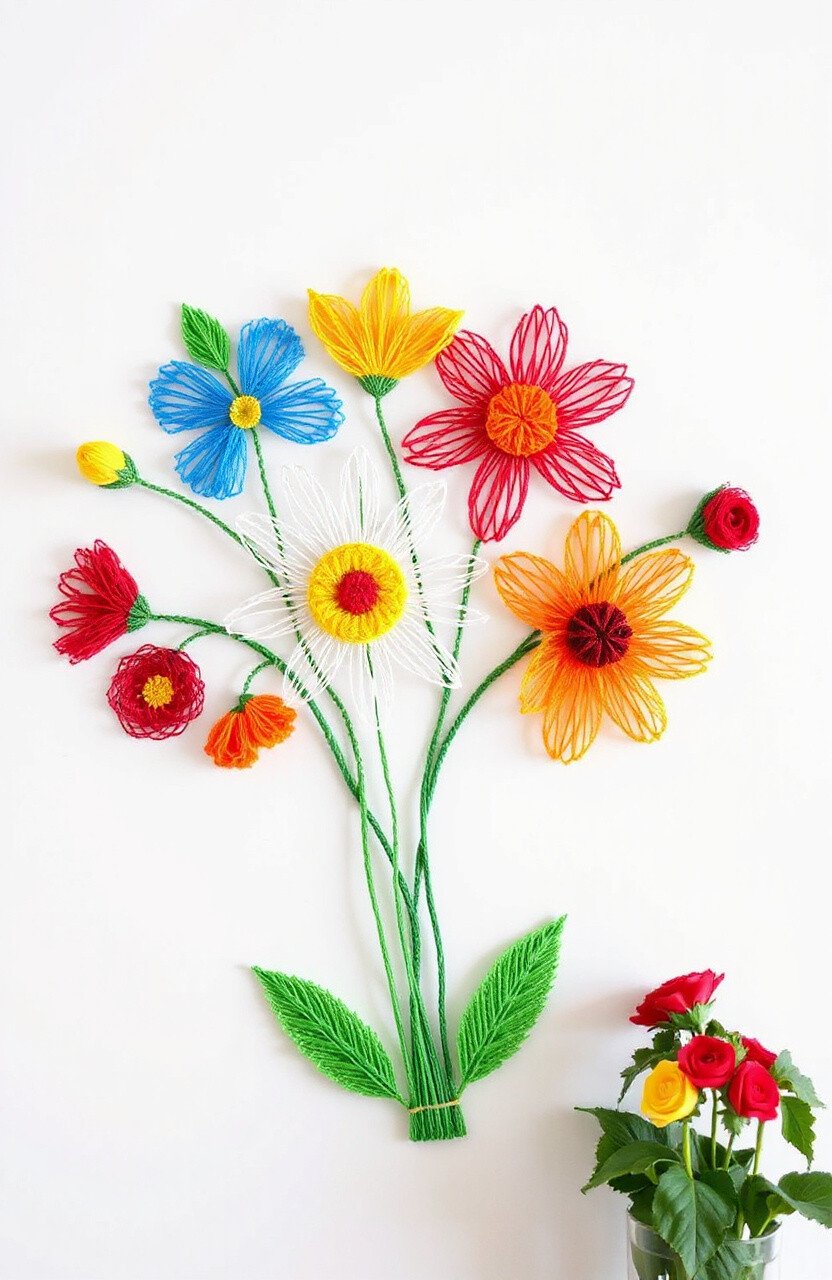 Bring the beauty of a garden indoors with floral string art. Use bright, cheerful colors to create a vibrant bouquet.