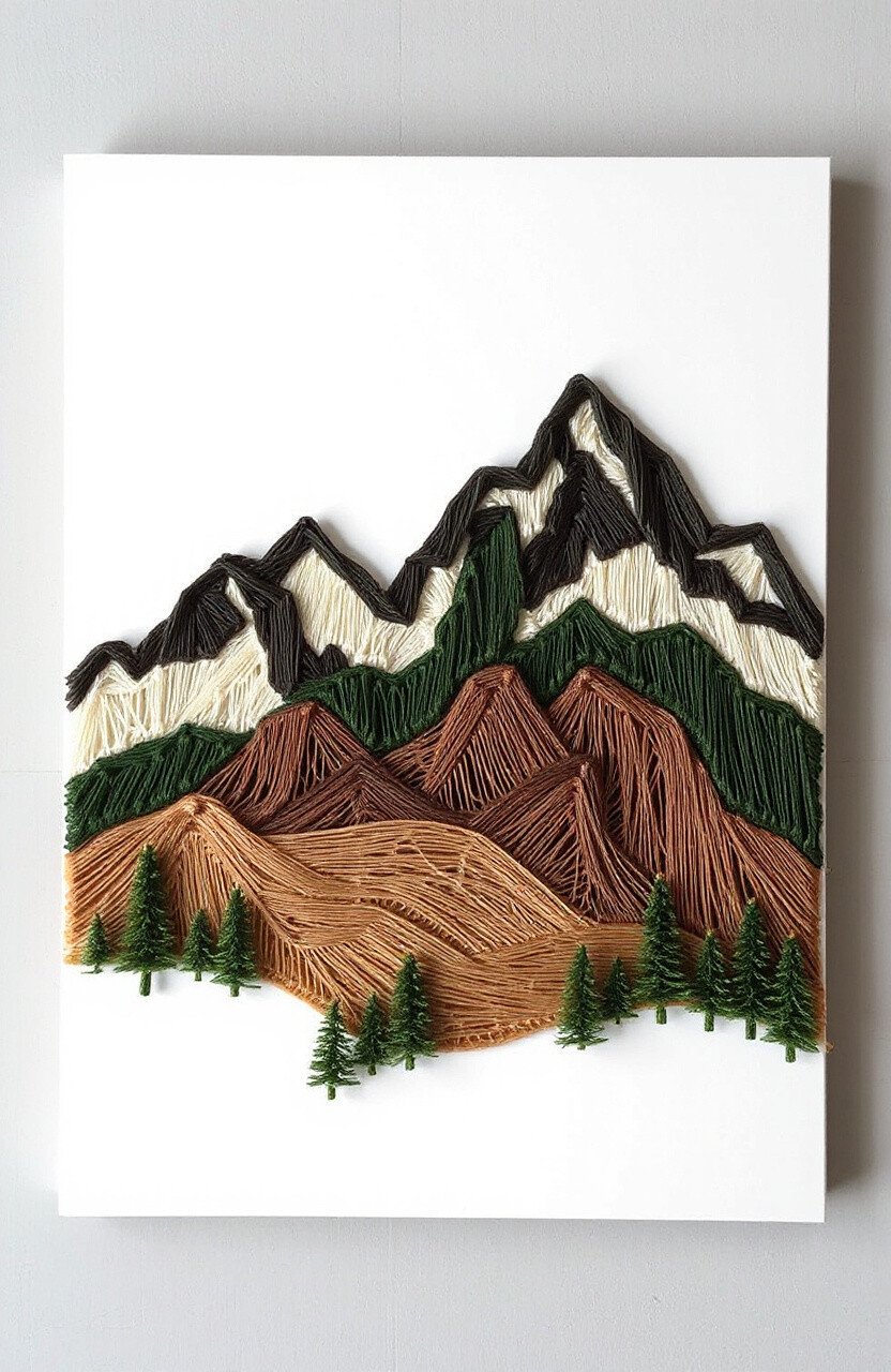 Capture the majesty of mountain ranges with this design. Use earthy tones like browns and greens to mimic nature.