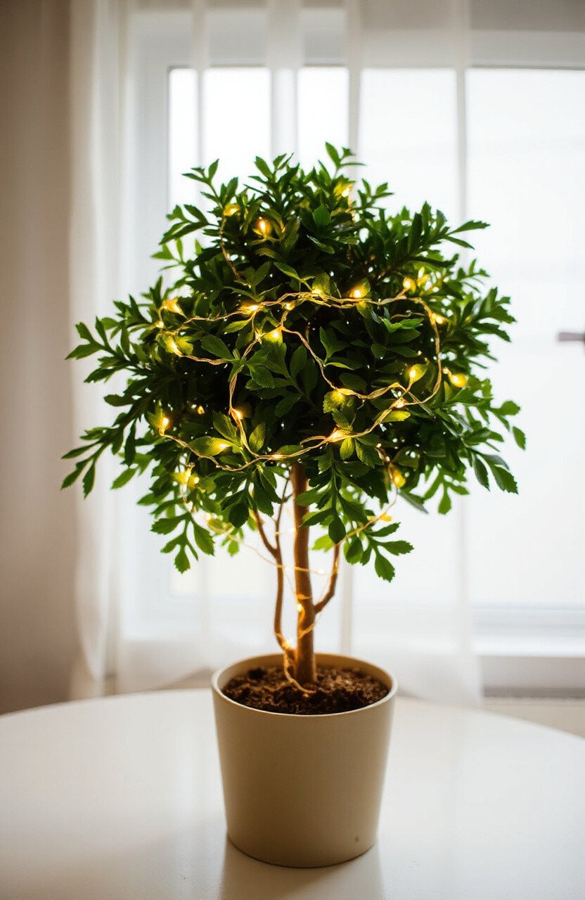 Wrap your indoor plants or small trees with tiny twinkling lights. It creates a whimsical forest vibe right in your living room.