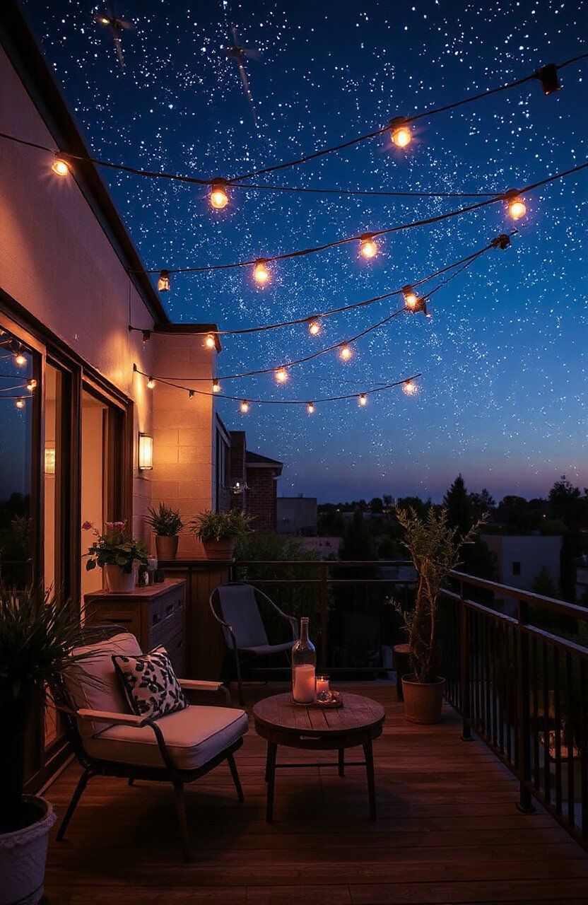 Turn your balcony into a starry night with overhead string lights. It’s like having your own piece of the sky.