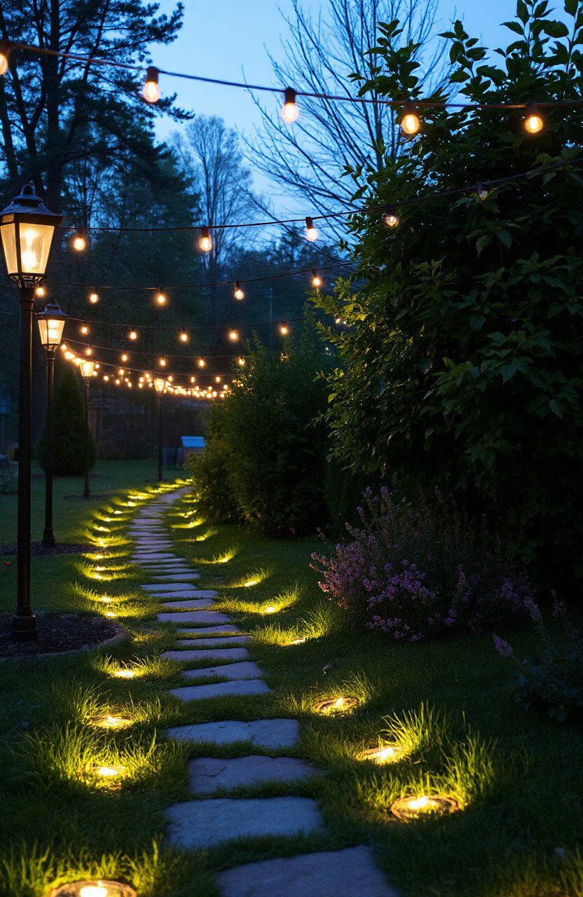 Line your garden paths with string lights for a fairy-tale garden. They guide guests with a soft, welcoming glow.