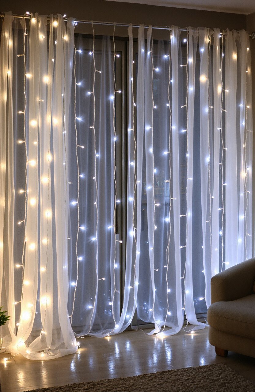 Imagine a wall of shimmering lights cascading down like a waterfall. Fairy light curtains offer just that.