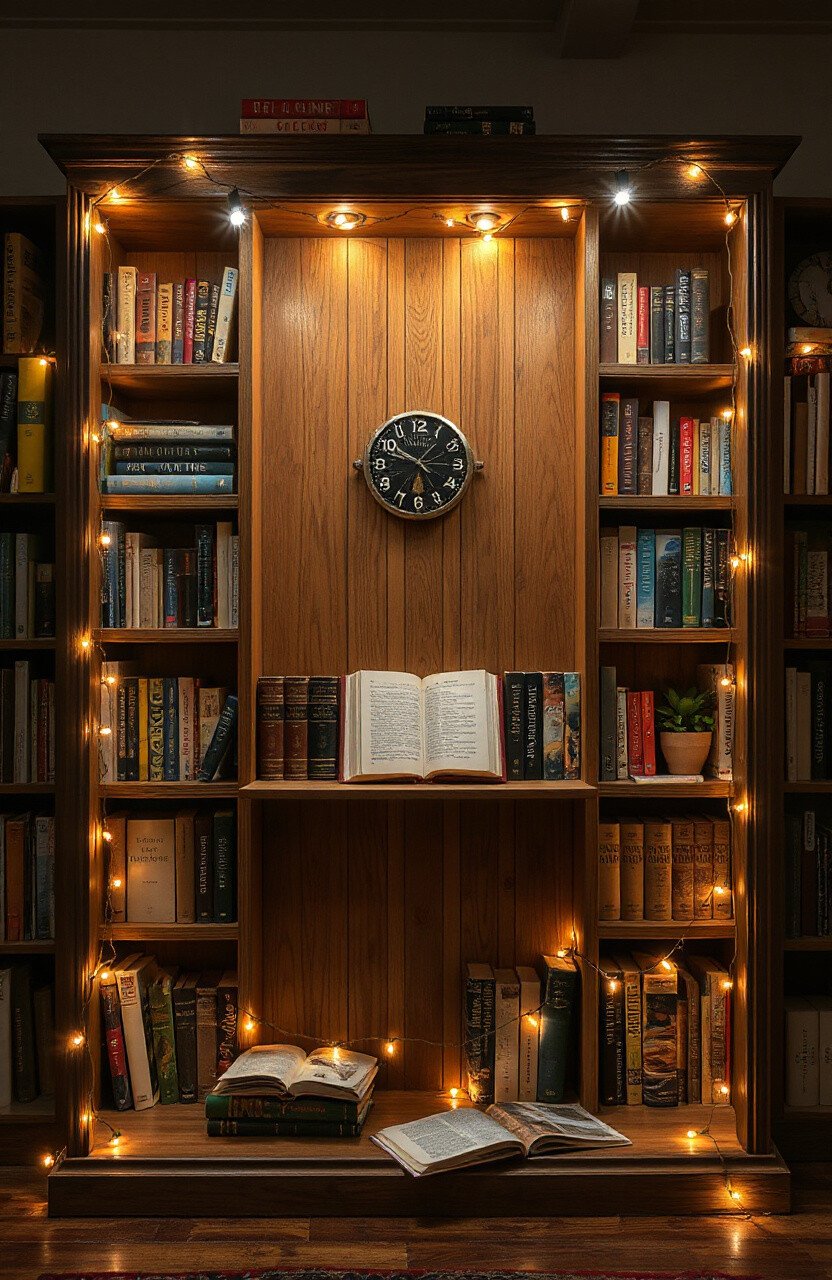 This idea turns any bookcase into a magical corner, perfect for book lovers and dreamers.