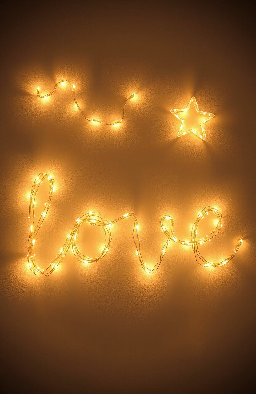 Create wall art with string lights by shaping them into hearts, stars, or words. It’s a unique way to personalize your space.