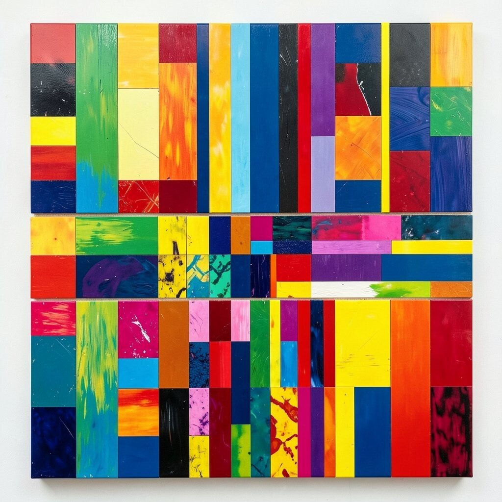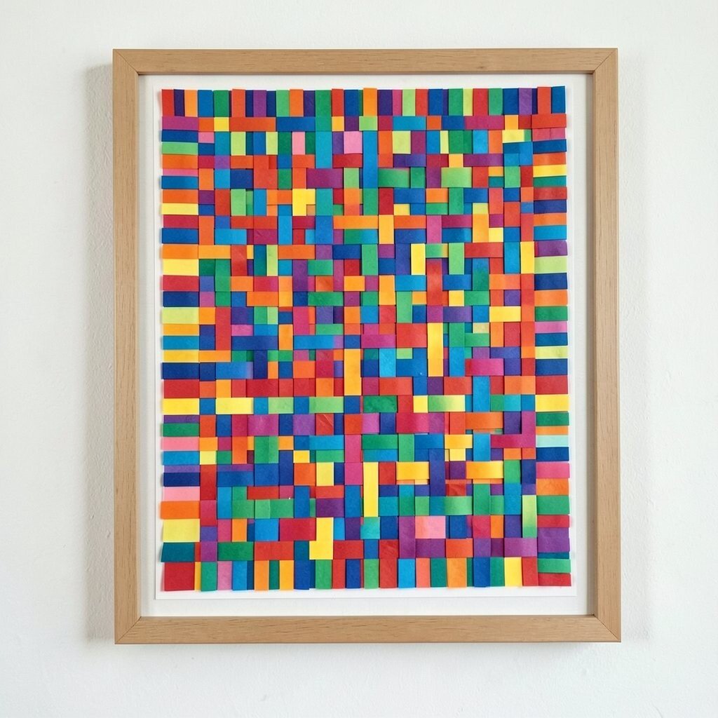 Create an abstract masterpiece with a strip collage. Arrange strips in any pattern for a modern art piece.