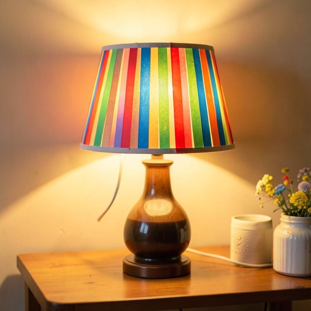 Transform a plain lampshade with colorful paper strips. It’s a quick way to refresh a room.