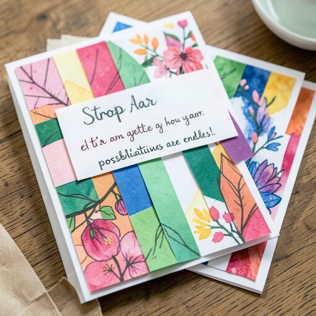 Make someone’s day special with a handmade greeting card. Use strips of paper to add vibrant designs.