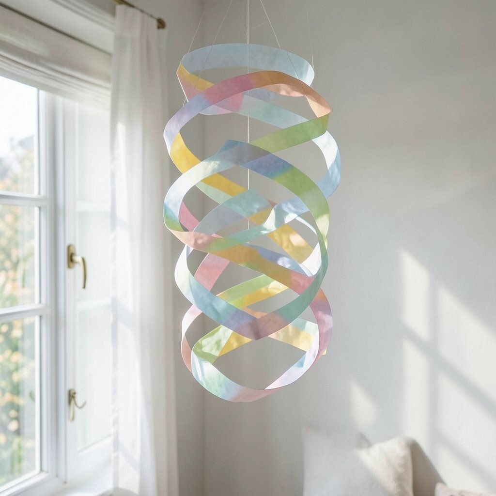 Make a mobile with spiraled strips of paper. It’s light, airy, and perfect for any room.