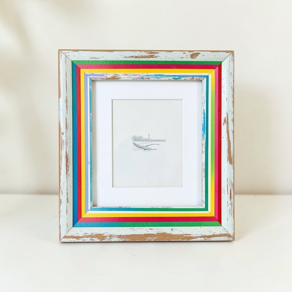 Give an old picture frame a new look with colorful paper strips. It’s like a frame makeover!