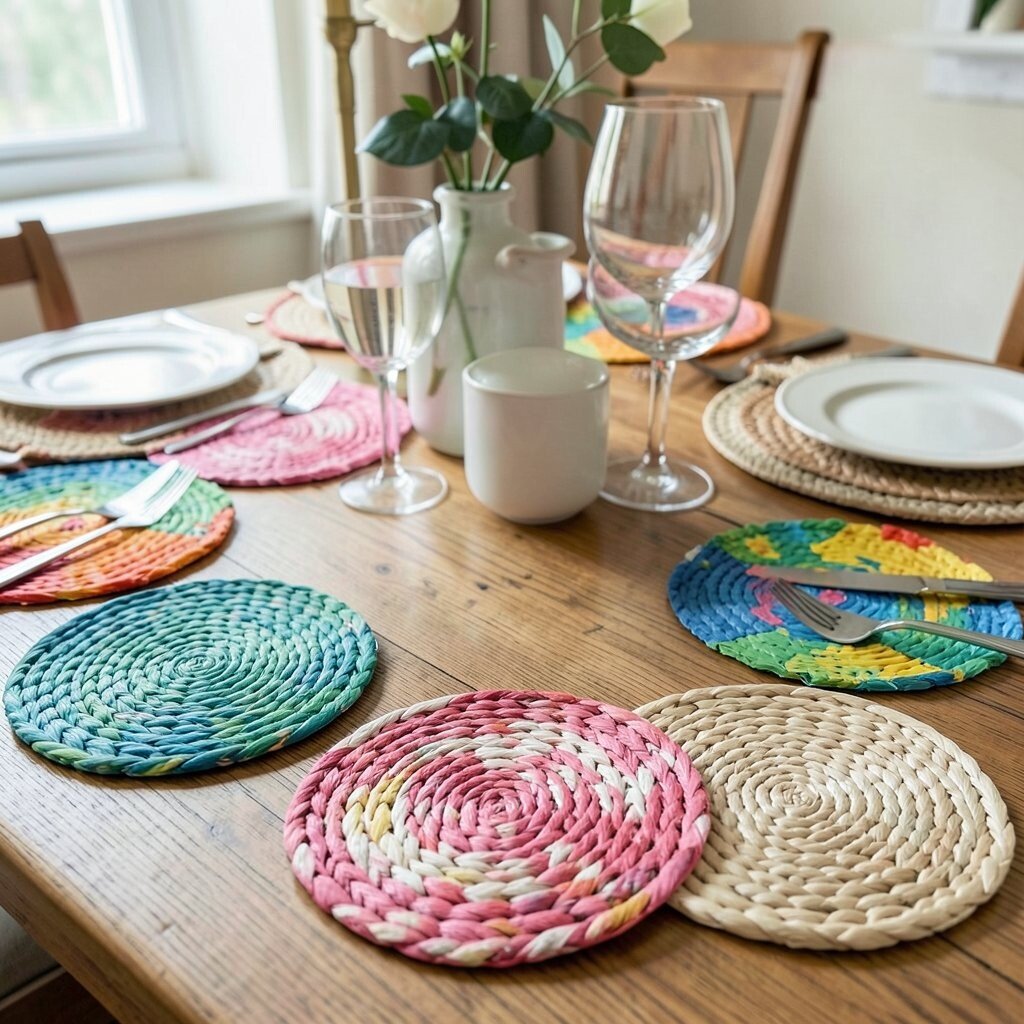 Make your table setting special with woven paper coasters. They’re practical and pretty!