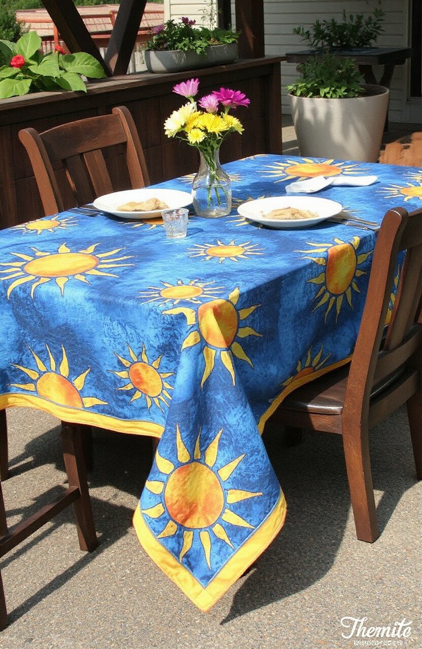 Notes: Links open in new window. Source: Google.comDesign a tablecloth with sun prints. Use fabric dye or paint to create your pattern. Choose colors that match your décor.
