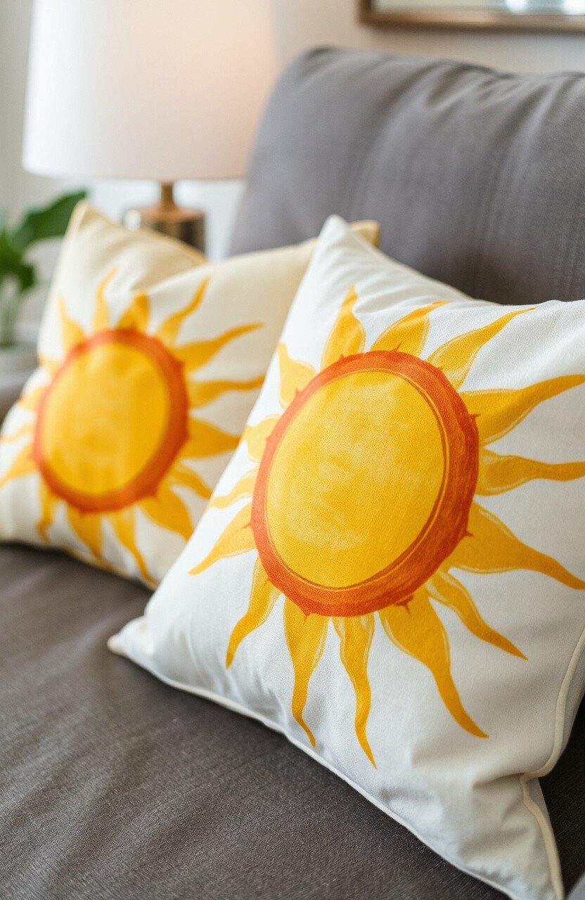 Notes: Links open in new window. Source: Google.comBrighten your living room with sun-themed pillow covers. Use fabric paint or iron-on transfers. Choose designs that make you smile.