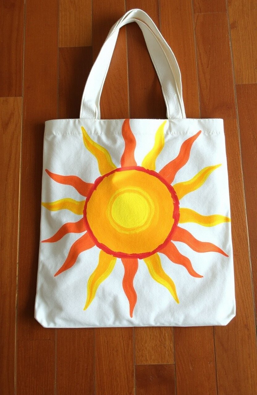 Notes: Links open in new window. Source: Google.comTurn a plain tote into a sunny masterpiece. Paint a big, bold sun in the center. Use fabric markers or paint for vibrant colors.