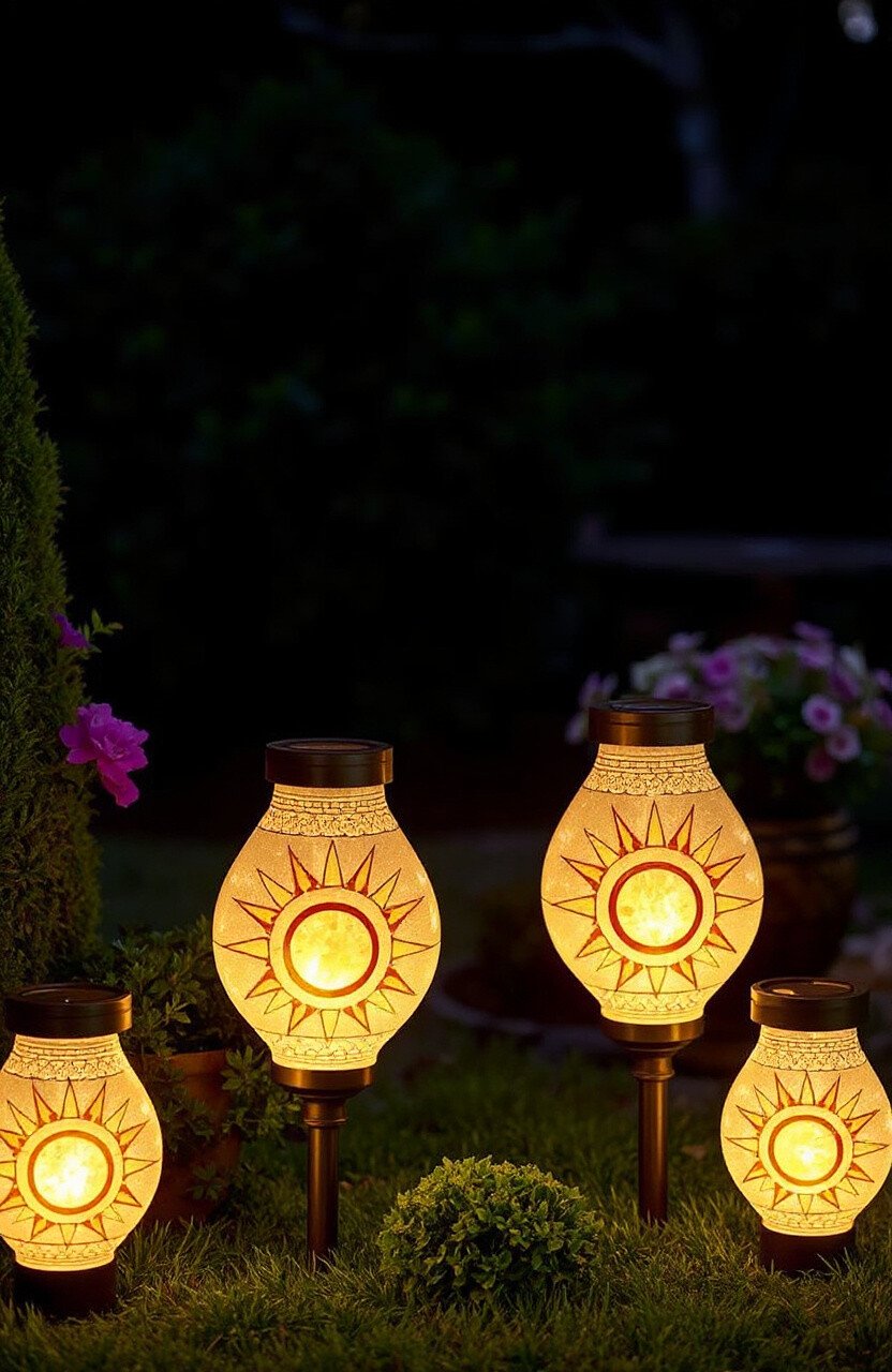 Notes: Links open in new window. Source: Google.comLight up your garden with solar lanterns decorated with sun motifs. Let them soak up the sun by day and glow by night. These lanterns are both beautiful and eco-friendly.