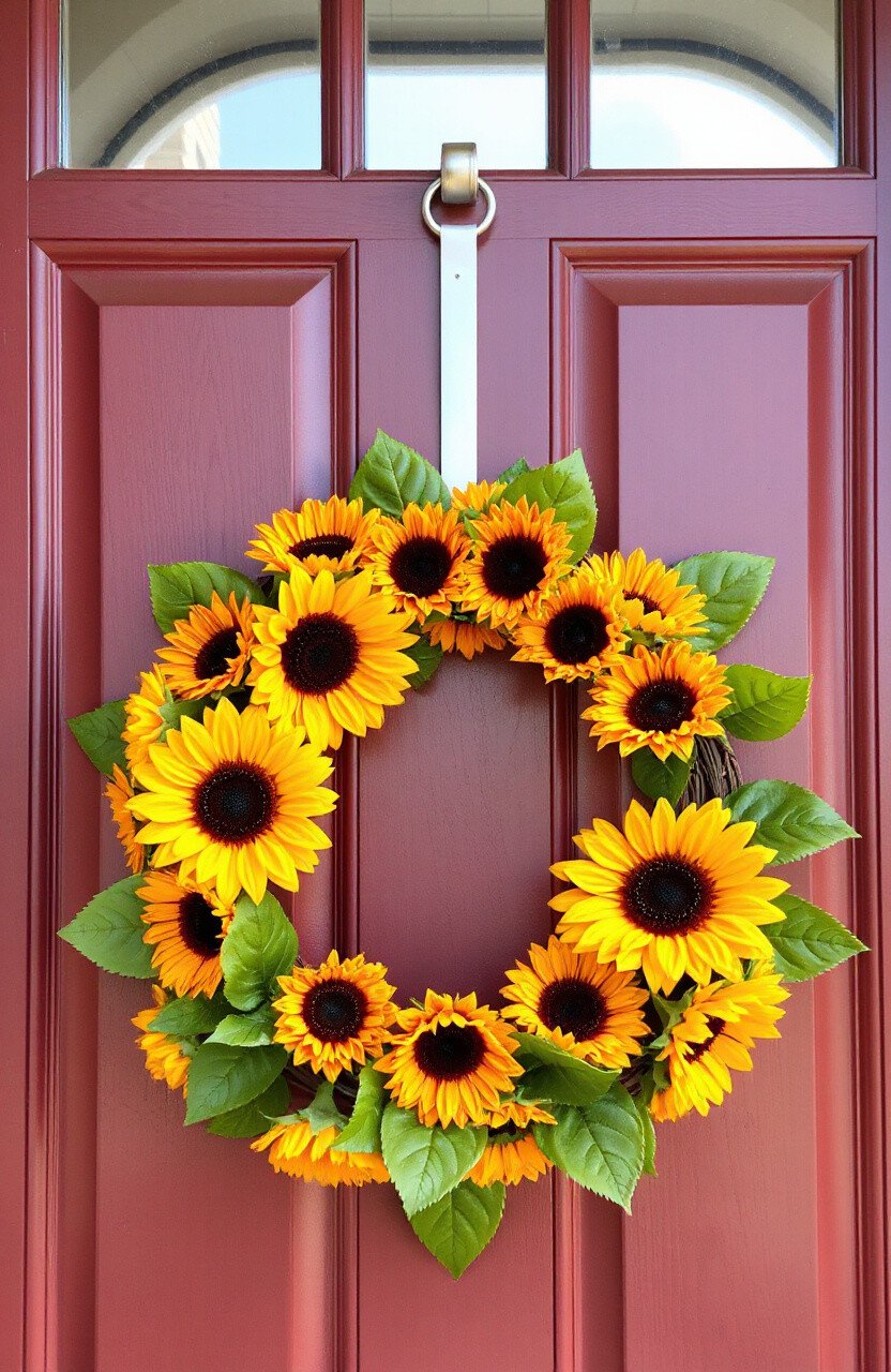Notes: Links open in new window. Source: Google.comBring the garden indoors with a sunflower wreath. Use artificial sunflowers for a lasting display. Add green leaves for contrast.