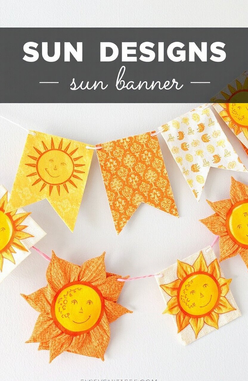Notes: Links open in new window. Source: Google.comCreate a banner with patches of sun-themed fabric. Use a mix of patterns and textures. Sew or glue them onto a string.