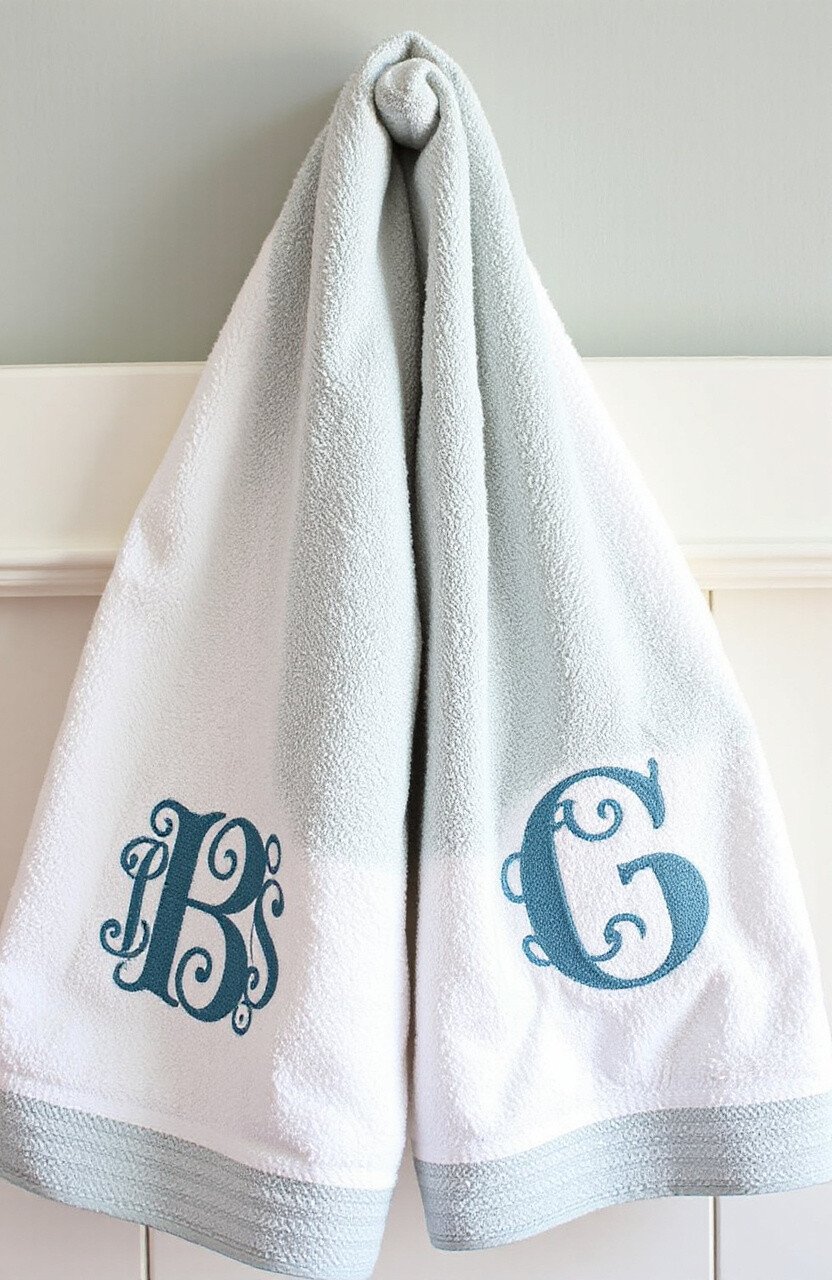 Add a touch of elegance to your bathroom with monogrammed towels. They’re not just luxurious but also practical. It’s like a spa day every day!