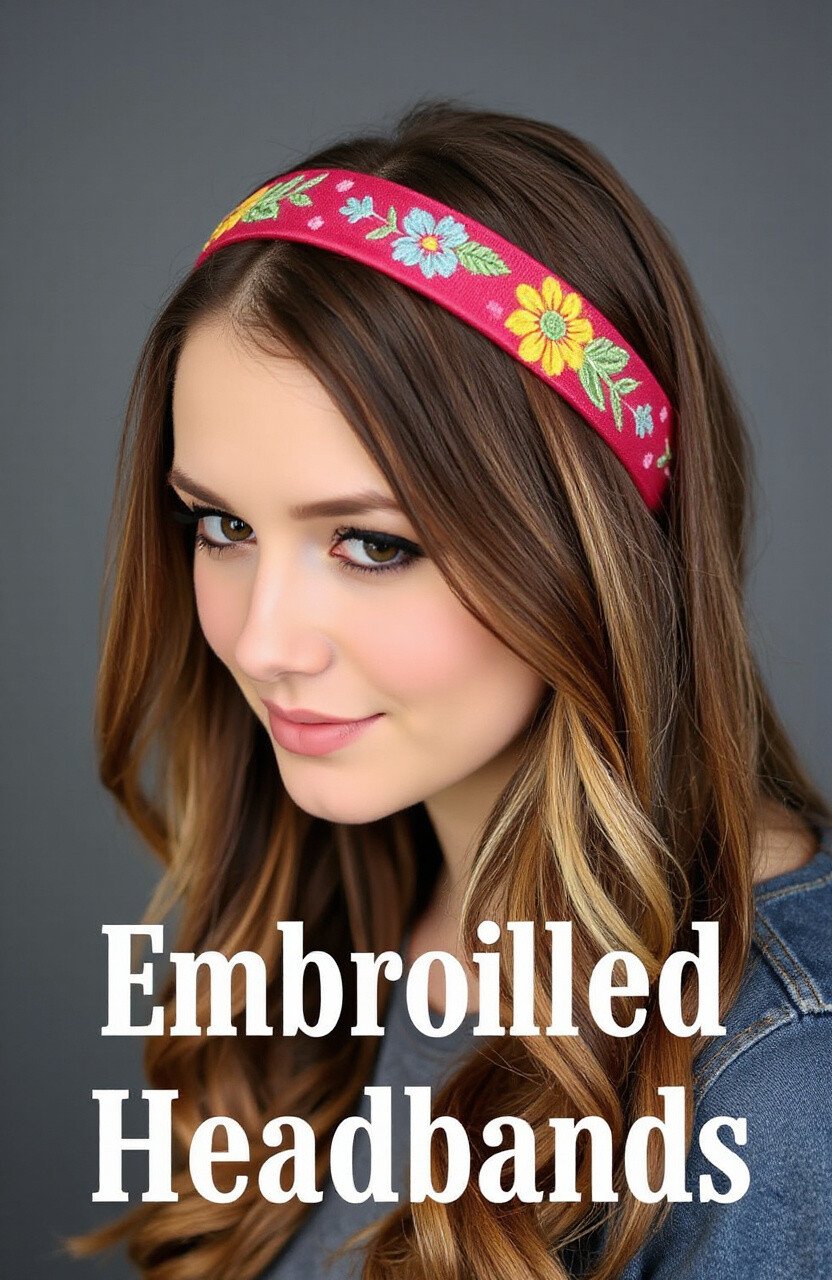 Keep your hair in place with a stylish embroidered headband. It’s like wearing a crown of creativity. This idea is perfect for adding flair to any hairdo.