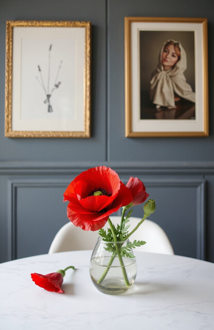 This flower is great for accentuating a centerpiece in dining rooms. Its vibrant red hue is both passionate and inviting.