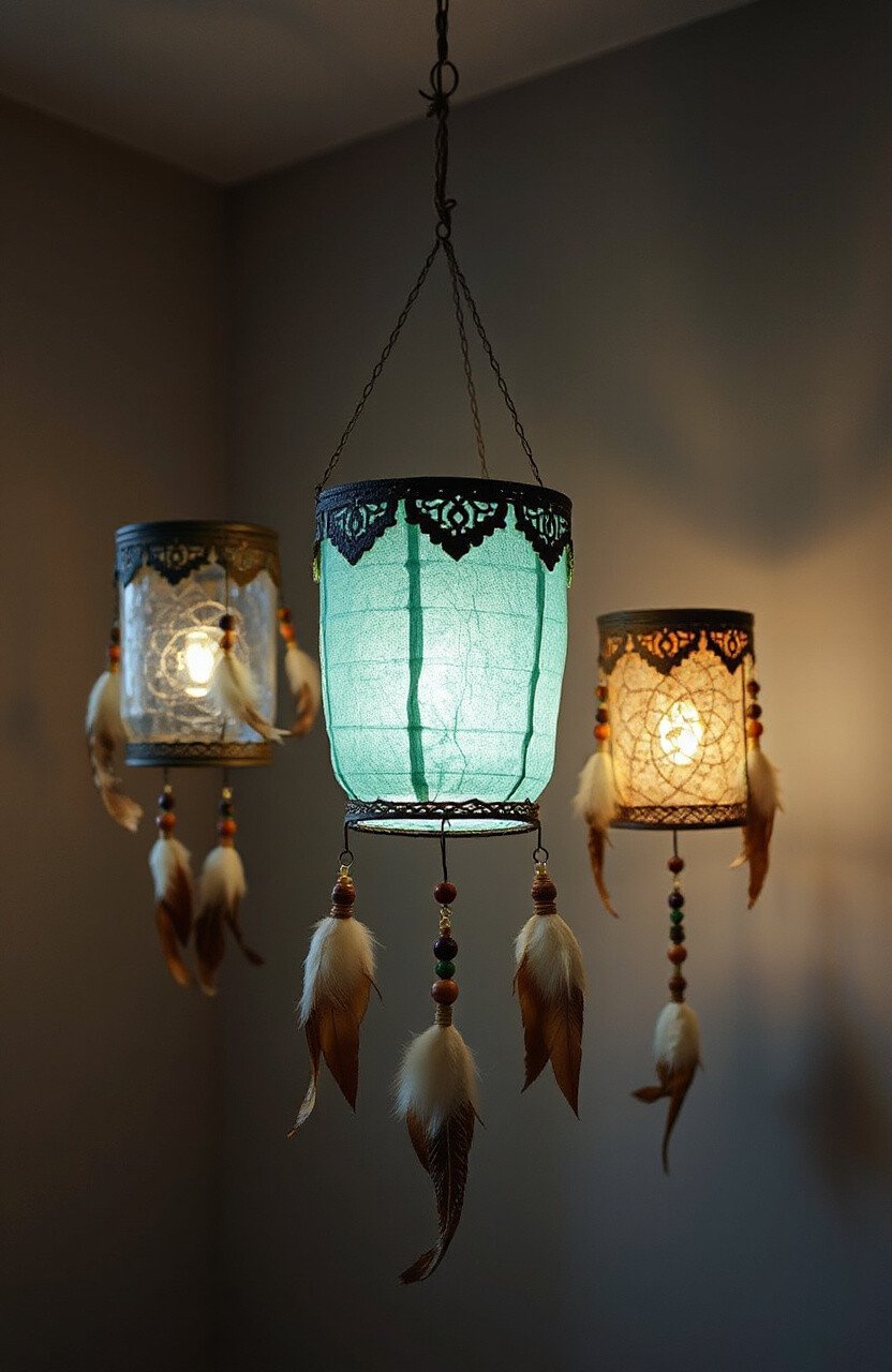 Combine lanterns with dreamcatchers for a boho look. Use earthy tones and add feathers and beads.