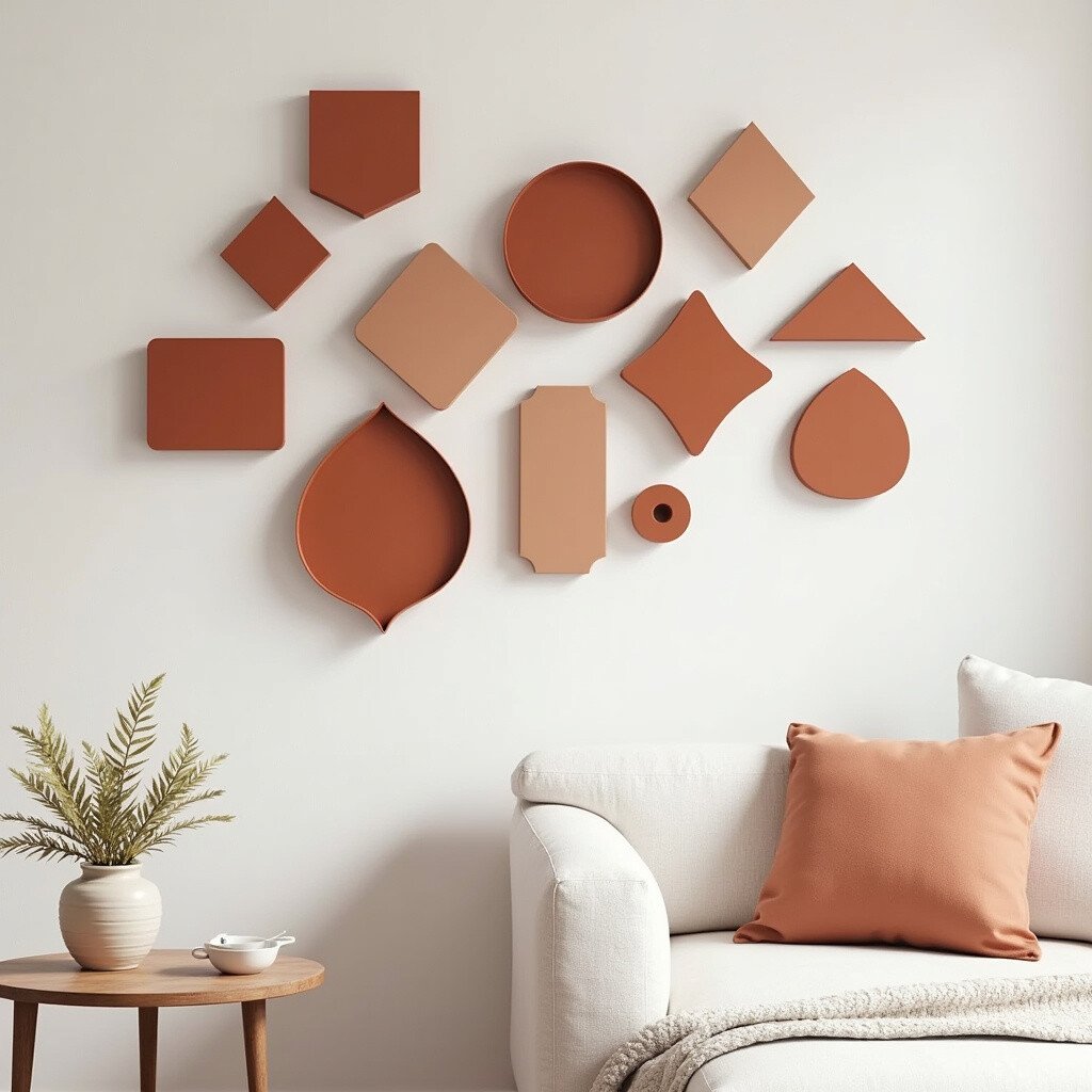 Geometric shapes crafted from terracotta make striking wall art. They add a modern twist to the cottagecore aesthetic.