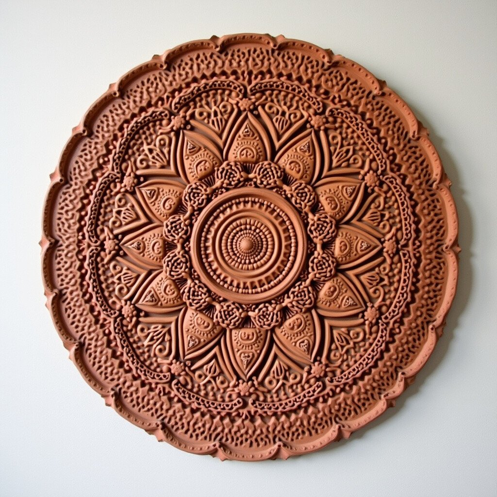 Mandala art made from terracotta is a stunning addition to any wall. The intricate patterns draw the eye and calm the mind.