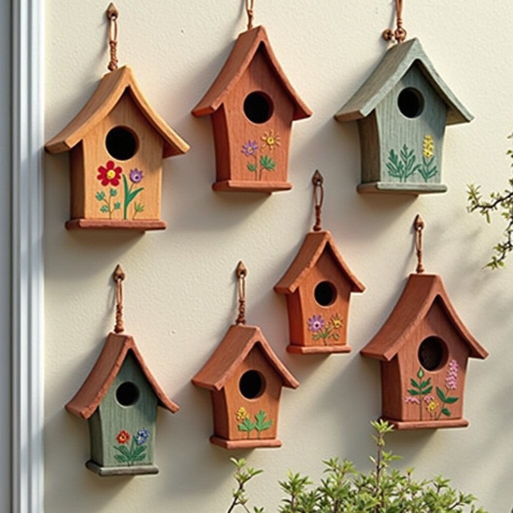 These birdhouses are often uniquely shaped and painted, making each one special. Hang them on a porch or garden wall for added life and color.