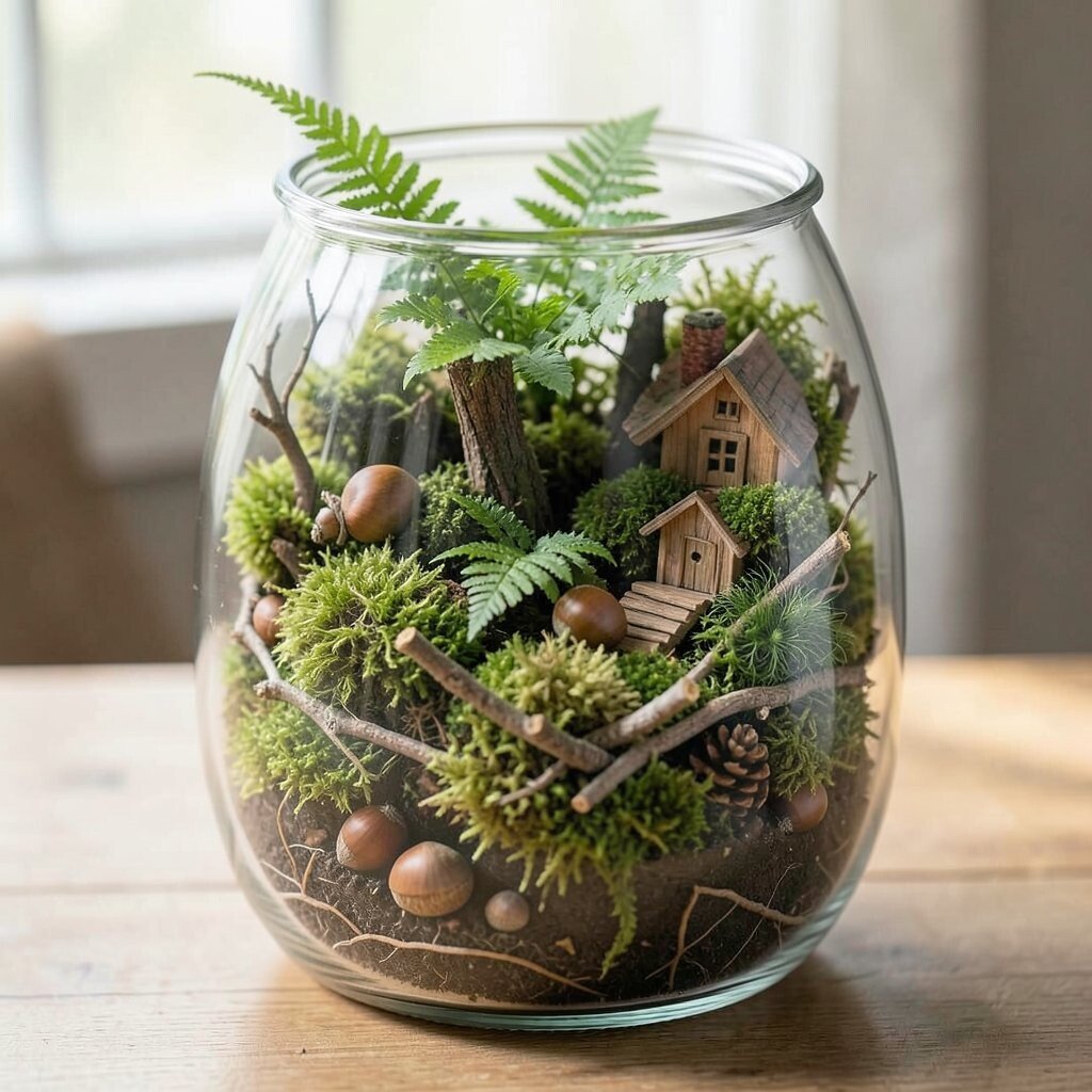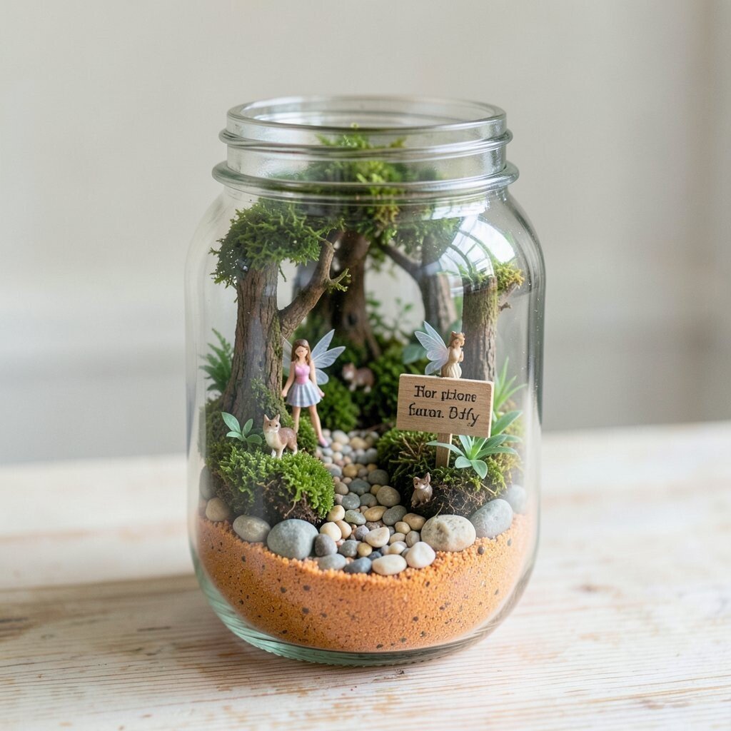 Picture a tiny forest inside a glass jar, complete with moss, small stones, and miniature plants. It’s like bringing a fairy tale into your home. Adding small figurines of fairies or woodland creatures can make this terrarium look like a scene from a storybook.