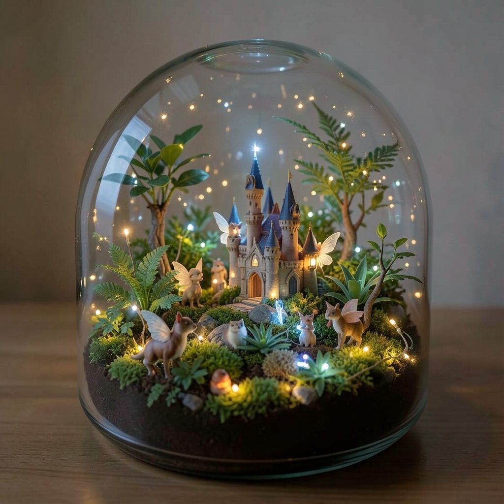The combination of lights and greenery creates a captivating and dreamy display. Adding elements like tiny fairies or a miniature castle can bring your fantasy to life. It’s perfect for anyone who loves a touch of whimsy.