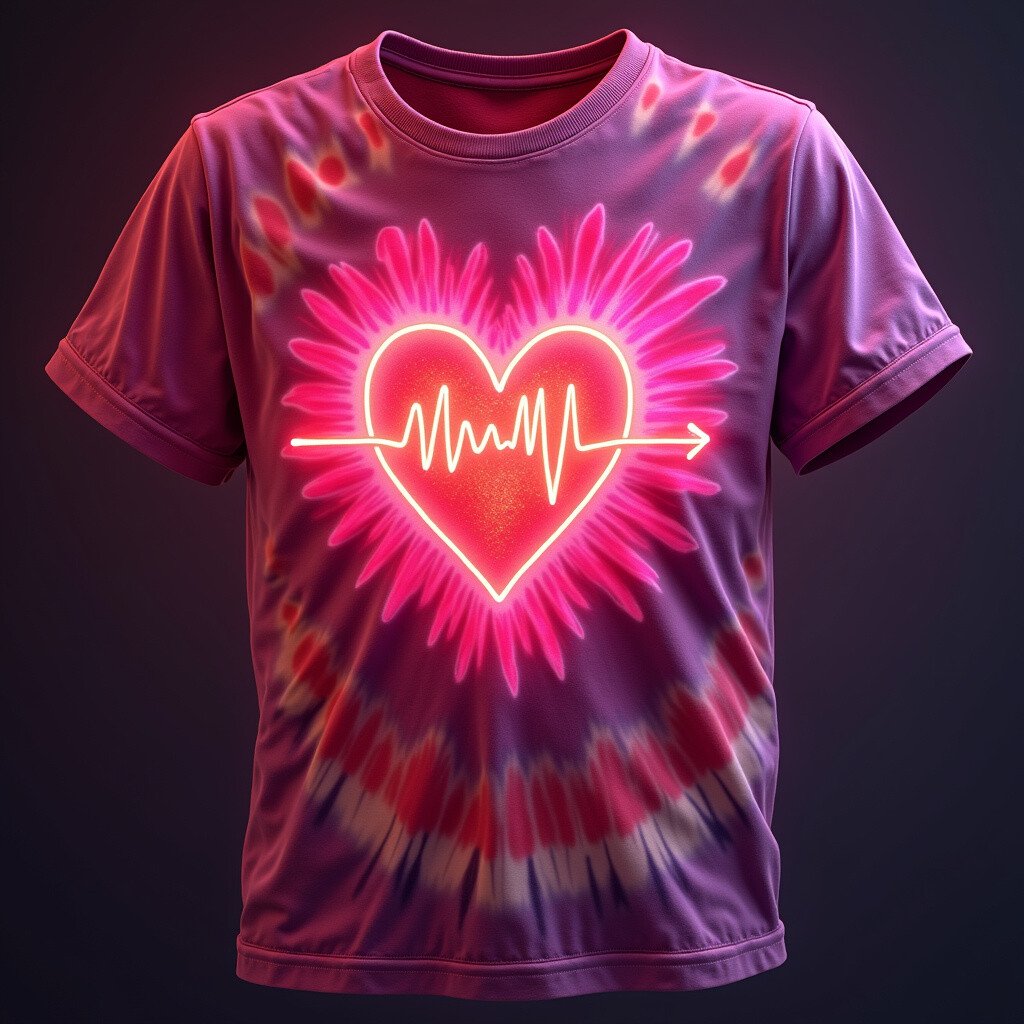 Show off your heart on your sleeve, literally, with a radiant heartbeat design. The neon reds and pinks pulse through the shirt, creating a warm and lively vibe.
