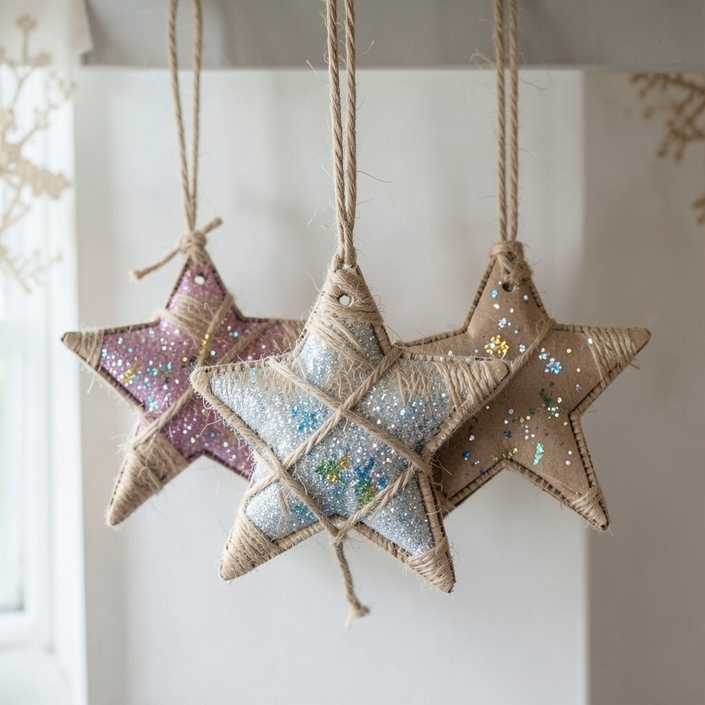 Crafting these is simple. Cut out star shapes from cardboard, wrap with twine, and add a loop for hanging. You can personalize them with paint or glitter for added flair.