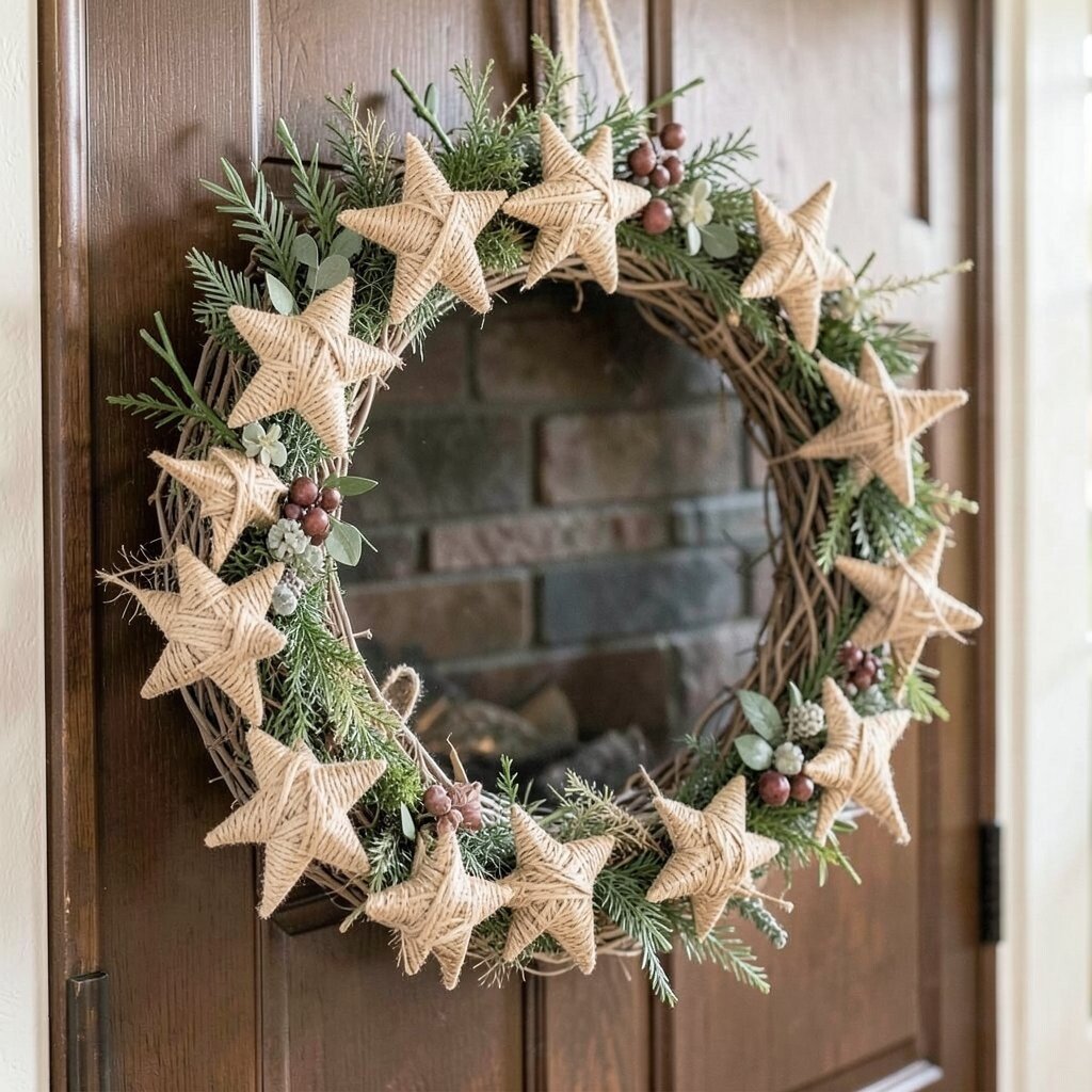A wreath is always welcoming, and when made of twine stars, it becomes a unique piece of decor that stands out. Hang it on your door or above your fireplace to greet guests with style.