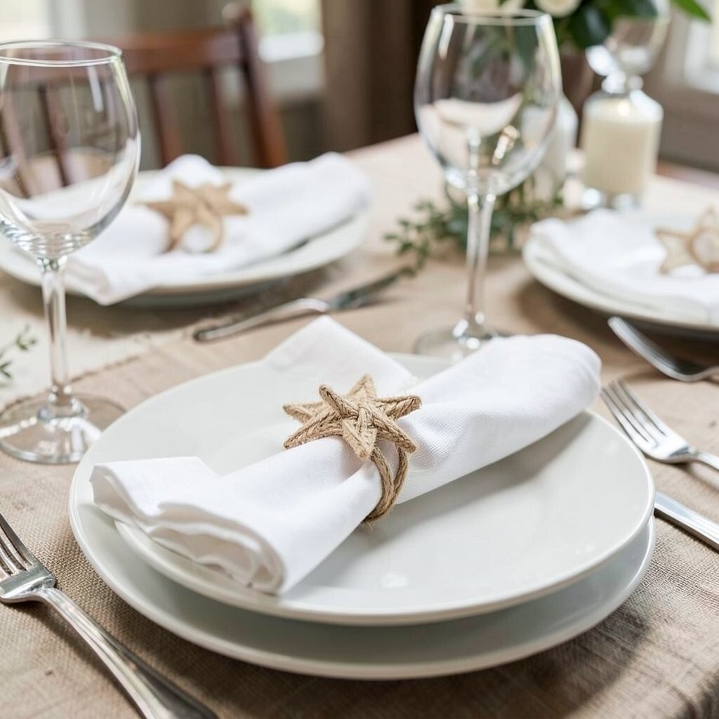 Set the table with style using twine star napkin rings. These charming accessories add a touch of rustic elegance to any meal.