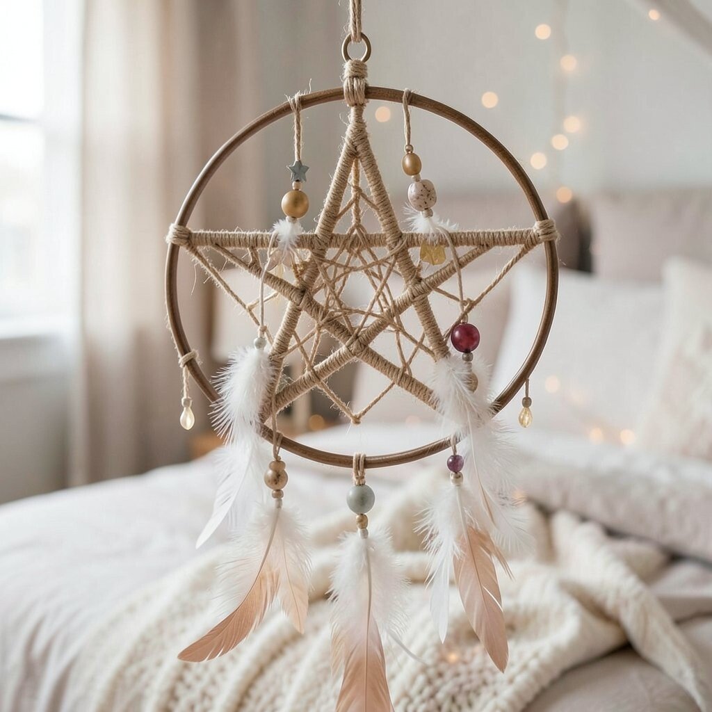 Capture sweet dreams with a twine star dreamcatcher. This whimsical decor piece adds a touch of magic to any bedroom.