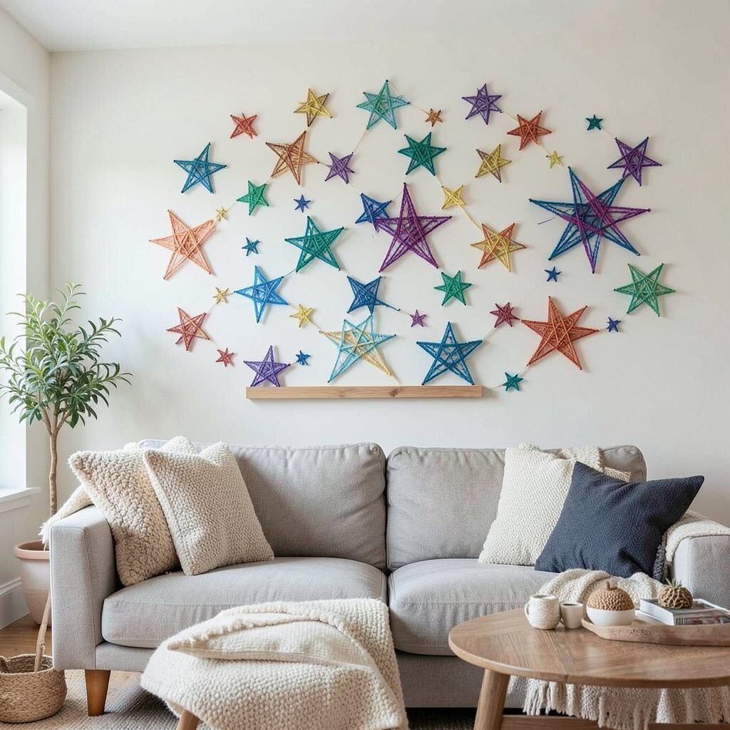 Using a wooden frame and some nails, wrap twine in creative patterns to form stars. The beauty of this project lies in its simplicity and customization. Choose colors that complement your existing decor, or go bold with contrasting hues.